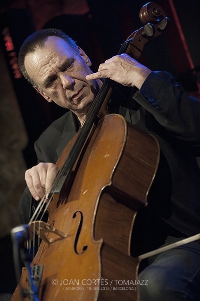 In Barcelona he has performed with Mauricio and Liba Villavecchia, Perico Sambaet, Jo Krause, Ginessa Ortega, Tanya Tagaq, Chicuelo, Ramón Muntaner, Jordi Sabatés, Theo Lovendie, Albert Bover, Lola Stouthamer, Matthew Simon, Julian Vaughn, Paul Stocker and Horacio Fumero. Together with Geert Krosenbrink and Joaquin Pelaez they formed the successful classical music ensemble “Trio Amati”. He set up the Strings Imrov Association (SIA) with Jaime del Blanco and Joao da Silva: violins, Manel Ortega: contrabass and Daniel Levi: drums. And, reaching over to Eastern Europe he put the band Balkan Noise together with Aljosa Mutic´: tenor sax, Iván Dimitrov: gadulka and Jovan Horvat Grbic on percussion. He played a memorable concert with Hamid Khabazi on Tar. Settling into Catalan traditional folk music he performs with Francesc Marrimon on accordian and Eduard Casals on gralla. He wrote for and directed the Big Band de l’Associació de Escoles de Catalunya for its European tour. He has taught cello, ear training, jazz and improvisation at various schools, including the Taller de Musics ESEM  conservatory.